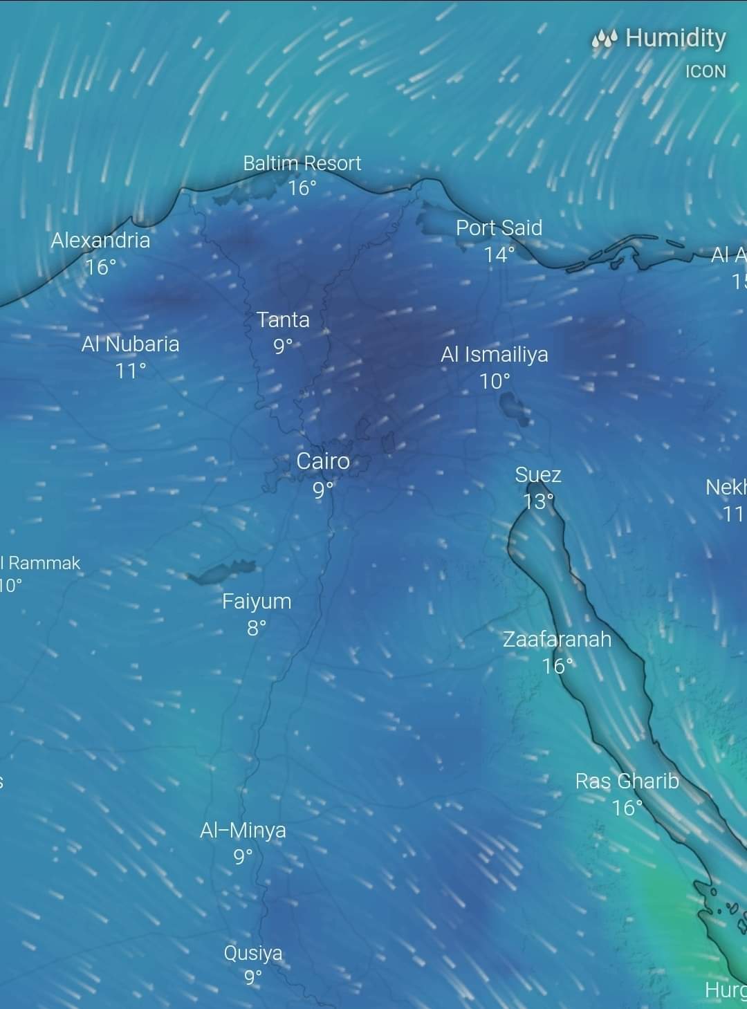 وتكون حالة الطقس اليوم، مائل للبرودة على القاهرة الكبرى والوجه البحري وشمال الصعيد والسواحل الشمالية، مائل للدفء على جنوب سيناء وجنوب الصعيد.