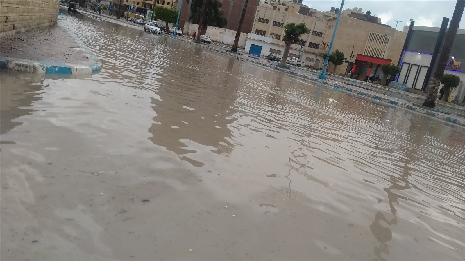 وتسببت الأمطار في إحداث سيول بمنطقة سيدى حنيش ، بعد تسرب مياه الأمطار من السدود ووصولها حتى الطريق الدولى.