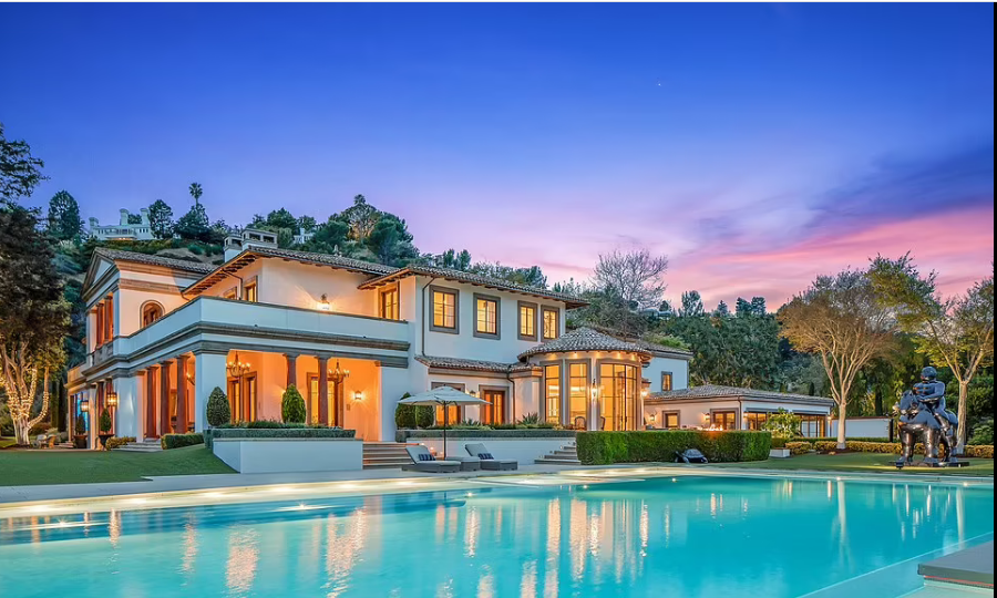 تبلغ مساحة القصر الضخم الواقع في بيفرلي هيلز نحو ألفي متر مربع.