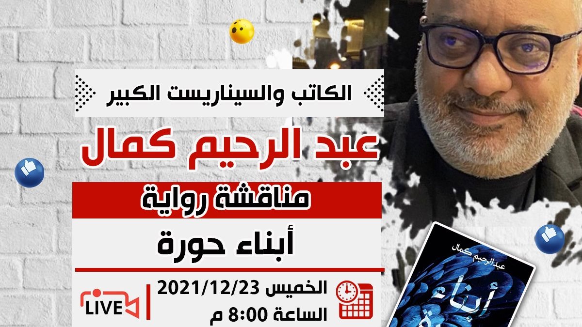وكان يستضيف جروب "مكتبة وهبان"، الكاتب والسيناريست عبد الرحيم كمال، يوم الخميس 23 ديسمبر، في بث مباشر على فيسبوك، لمناقشة رواية "أبناء حورة"، وذلك في تمام الساعة الثامنة مساءً، ويدير المناقشة الصحفي إسلام وهبان، مؤسس "مكتبة وهبان".