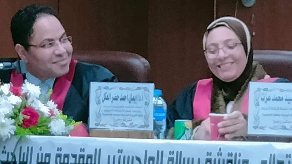 وتكونت لجنة المناقشة والحكم علي الرسالة من كل من، الدكتورة إيمان أحمد خضر أستاذ الإعلام والمسرح التربوي ورئيس قسم الإعلام بكلية التربية النوعية بجامعة المنصورة ,الدكتور السيد محمد عزت أستاذ الدراما بقسم الإعلام التربوى بكلية التربية النوعية بجامعة المنصورة، ,الدكتور عمر فرج أستاذ الدراما والنقد المساعد ورئيس قسم المسرح والدراما بكلية الآداب بجامعة بني سويف، ,الدكتورة أسماء عبد المنعم أبو الفتوح أستاذ الإعلام والمسرح التربوي بقسم الإعلام التربوى بكلية التربية النوعية بجامعة المنصورة.