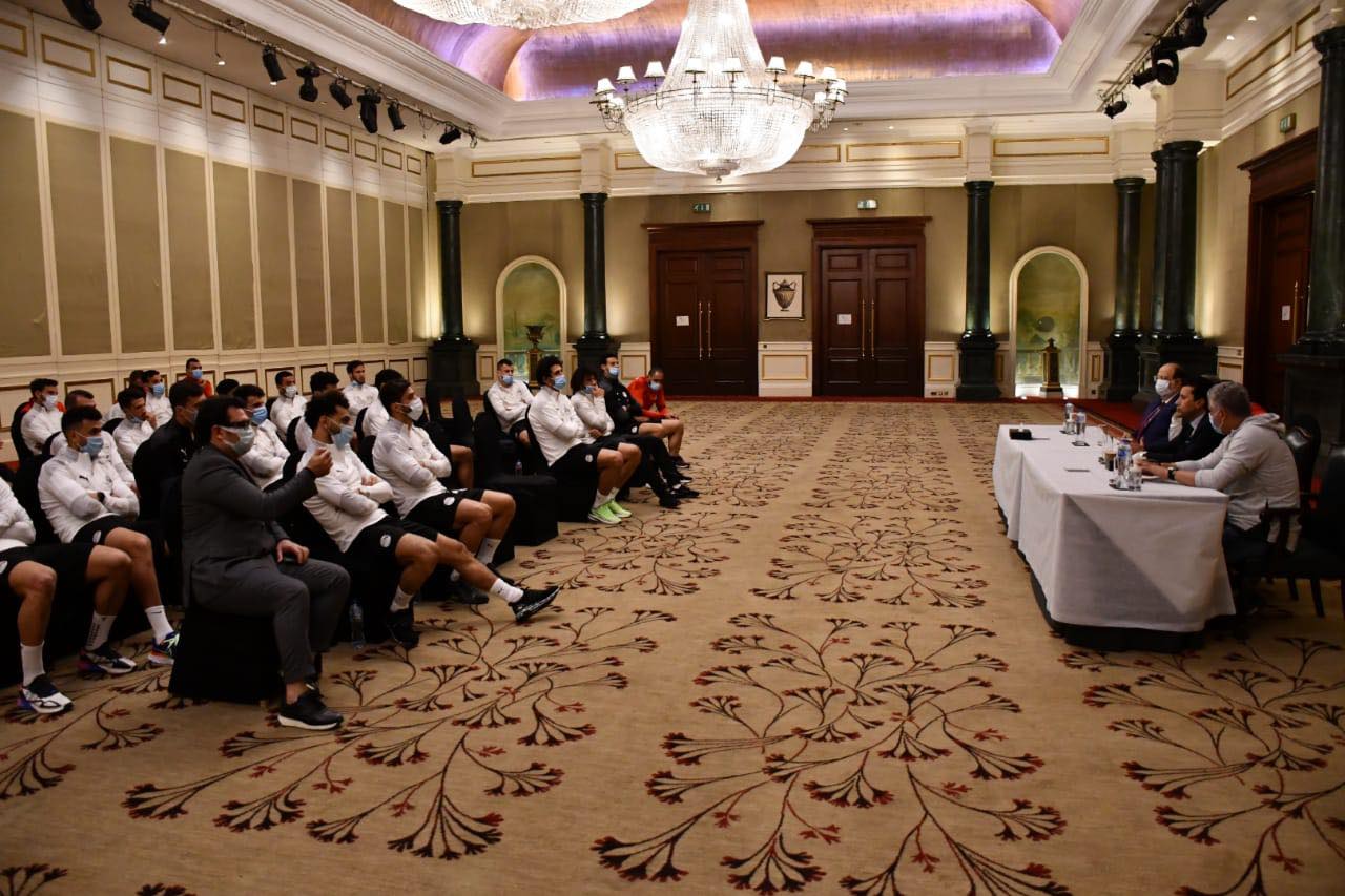 ونقل صبحى للاعبين تحيات المهندس مصطفى مدبولى رئيس الوزراء، وطالبهم ببذل أقصى جهد لإسعاد عشاق الكرة فى مصر والفوز بالبطولة، ووعدهم بصرف مكافأة مالية كبيرة عند إحراز البطولة، مؤكداً على متابعة القيادة السياسية لحظة بلحظة لهم.