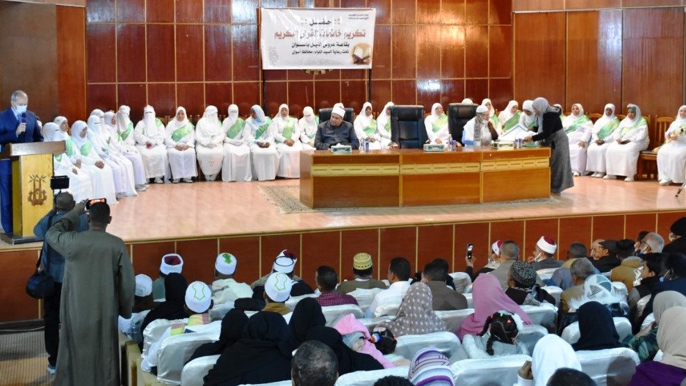وكان قد أناب اللواء أشرف عطية محافظ أسوان السكرتير العام اللواء حازم عزت لحضور فعاليات الحفل السنوى لتكريم 34 من خاتمات القرآن الكريم ضمن الدفعة 25 وذلك بحضور الشيخ رمضان عبد السميع وكيل وزارة الأوقاف ، والشيخ شعيب أبو سلامة المشرف العام على حلقات تحفيظ القرآن الكريم ، بالإضافة إلى القيادات الدينية والتنفيذية والشعبية، فضلاً عن جمع كبير من أسر المكرمات.