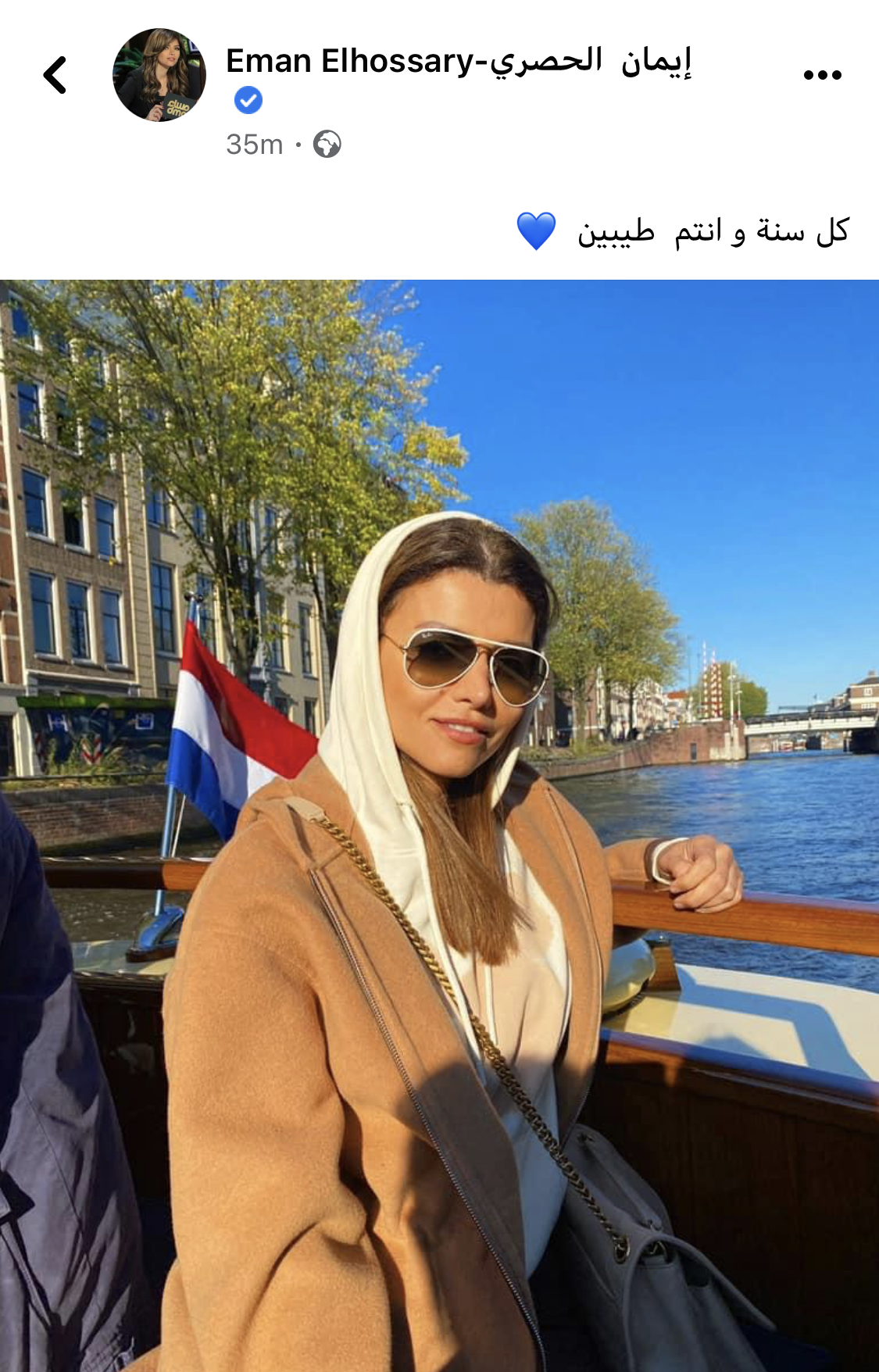 وظهرت إيمان الحصري باطلالة ناعمة، وعلقت علي الصورة، كاتبة: “كل سنة وانتم طيبين”.