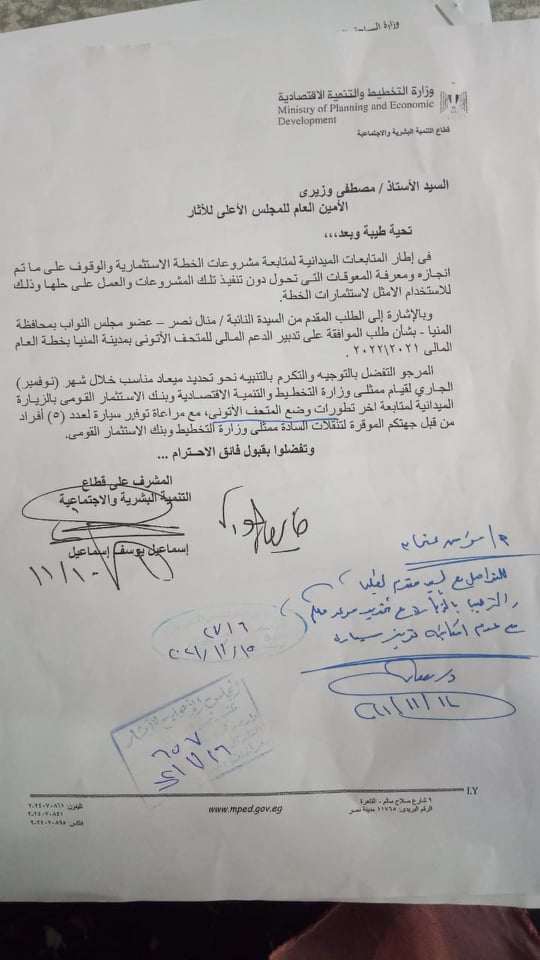 قامت الدكتورة هالة السعيد وزيرة التخطيط، بإدراج طلب النائبة منال نصرعضو مجلس النواب، بشأن تقديم الدعم المالي للمتحف الأتوني بمدينة المنيا والمتوقف استكماله منذ سنوات كثيرة، ضمن ميزانية العام القادم بدفعة أولي 50 مليون جنيه.