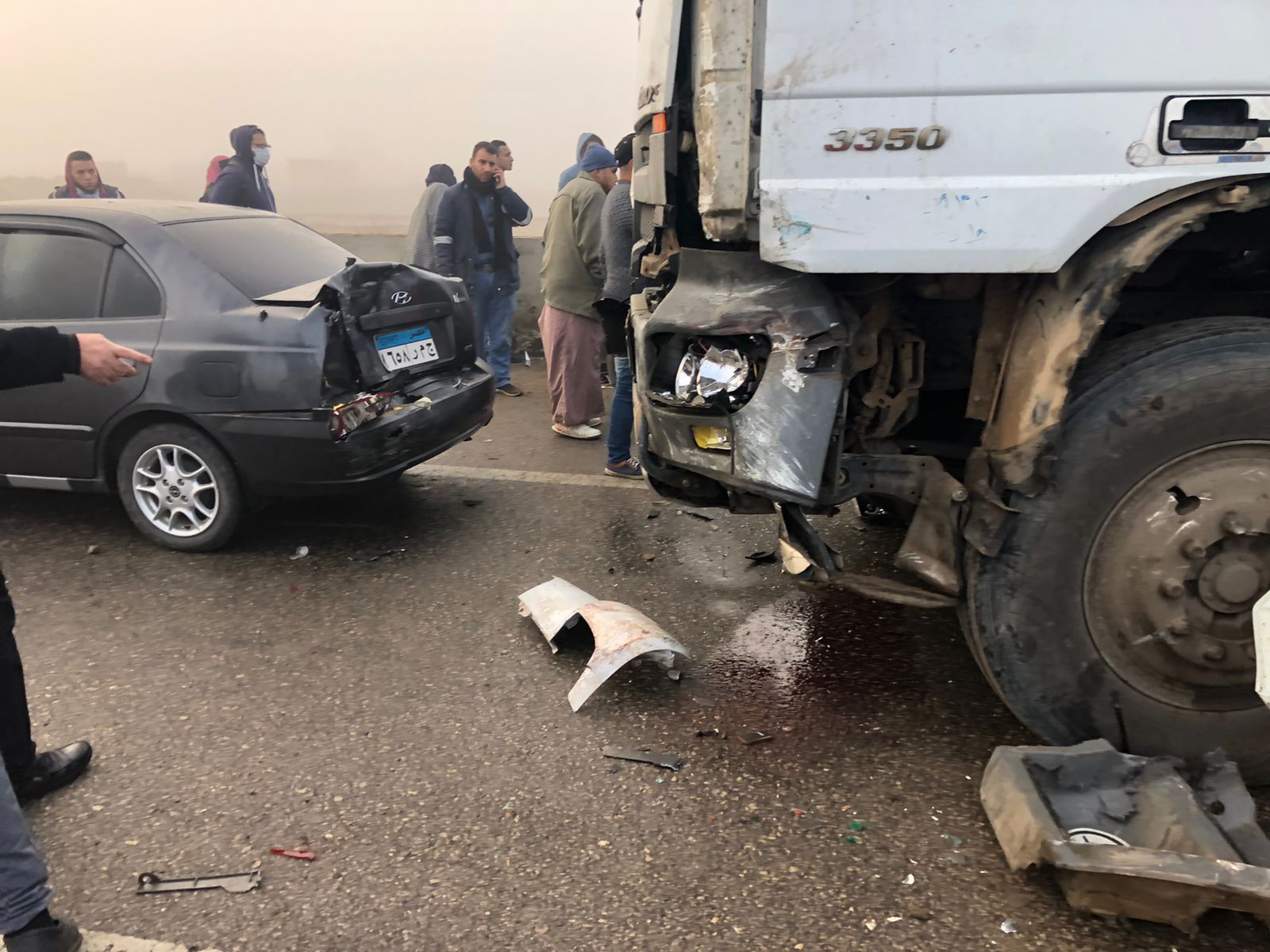 وتلقى اللواء، حسام بدرة مدير أمن دمياط، إخطارا يفيد بوقوع حادث على طريق بورسعيد دمياط، وتصادم سيارة نقل مع عدد من السيارات الملاكي، وعلى الفور انتقلت قوات الأمن وسيارات الإسعاف لمكان الواقعة، وتبين اصطدام تريلا بعدد ٦ سيارات ملاكى وميكروباص كانت تقف بجانب الطريق في انتظار تحسن حالة الطقس إلا أن التريلا جاءت مسرعة وقامت بالاصطدام بالسيارات ونتج عن ذلك إتلاف 6 سيارات وإصابة مواطن.