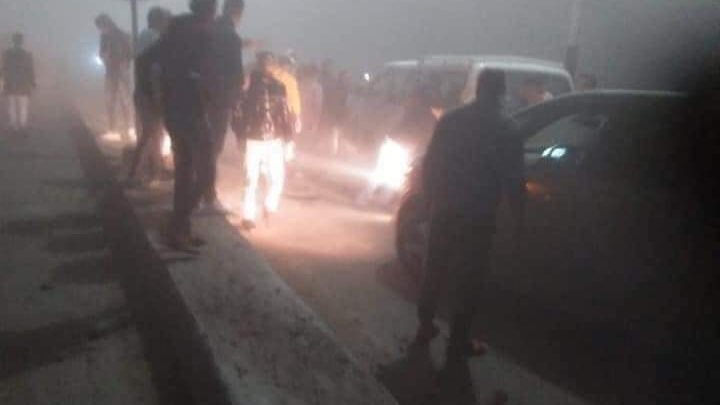وتلقى اللواء شريف رؤوف مدير أمن جنوب سيناء بلاغا يفيد بمصرع 17 شخصا وإصابة 17 آخرين وذلك نتيجة انعدام الرؤية واختلال عجلة القيادة من أحد السائقين .