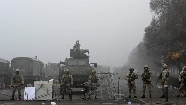 وأعلنت دول منظمة معاهدة الأمن الجماعي في وقت سابق، إرسال قوات حفظ سلام إلى كازاخستان بعد مناشدة رئيس كازاخستان قاسم جومارت توكاييف قادة الدول الأعضاء في المنظمة مساعدة بلاده في التغلب على ما وصفه "بالتهديد الإرهابي".
