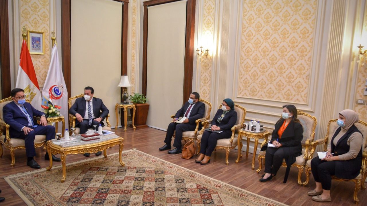 حضر الاجتماع الدكتور محمد حساني، مساعد وزير الصحة لمبادرات الصحة العامة، والدكتورة هبة والي، رئيس مجلس إدارة الشركة القابضة للمستحضرات الحيوية واللقاحات فاكسيرا.