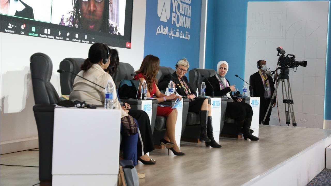 وشهد اليوم الثاني منمنتدى شباب العالمالمقام في مدينة شرم الشيخ،الجلسة الرئيسية بعنوان "الطريق من جلاسكو إلى شرم الشيخ لمواجهة التحديات المناخية" بحضور الرئيس عبد الفتاح السيسي، كما شهد اليوم أيضا جلسة نقاشية عنالمرأةبعنوان "نحو عالم آمن وشامل للمرأة".