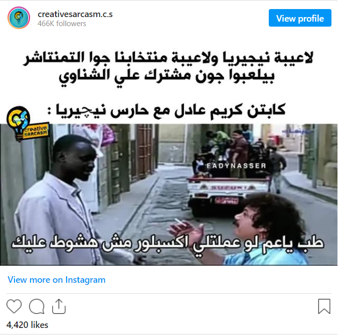 قوبلت هزيمة منتخب مصر أمام منتخب نيجيريا في أولى مباريات بطولة كأس الأمم الأفريقية، بسخرية على نطاق واسع على مواقع التواصل الاجتماعي، حيث نشر المشاهير ورواد السوشيال ميديا «كوميكس» ساخرة كوميدية في تعليقهم على المباراة.