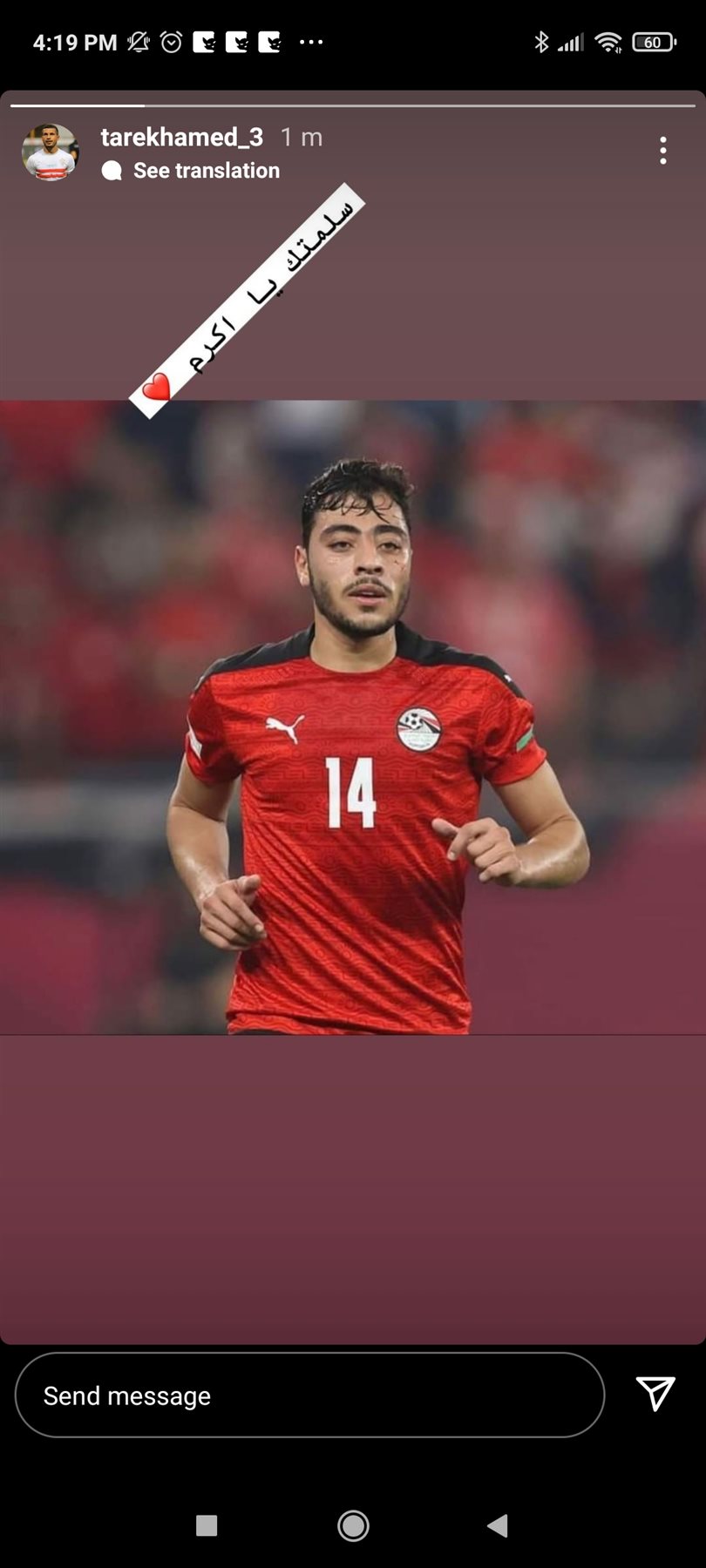 نشر اللاعب طارق حامد لاعب نادي الزمالك صورة للاعب اكرم توفيق لاعب النادي الأهلي و منتخب مصر عبر قصته علي موقع التواصل الاجتماعي انستجرام.