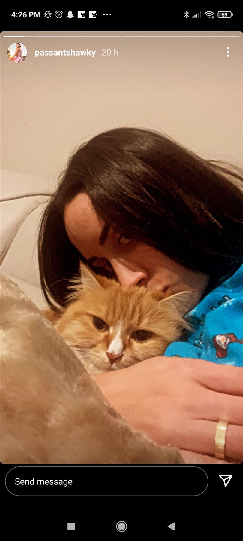 وظهرت بسنت شوقي في الصورة مرتدية بيجامة برفقة قطتها، مما نال إعجاب متابعيها.