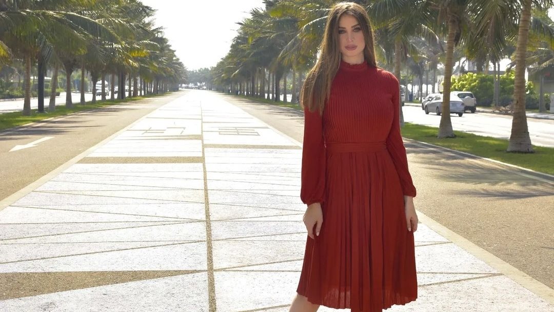 وأكملت شمس الكويتية، إطلالتها ببعض اللمسات البسيطة من المكياج، واختارت أن تبرز جمال عينيها الماسكرا والآي شادو والاي لاينر لتبرز جمال عينيها، مع وضع اللون الكشميري القاتم كأحمر شفاه، مع ترك خصلات شعرها منسدلا على وجهها بتسريحة انسيابية ناعمة.