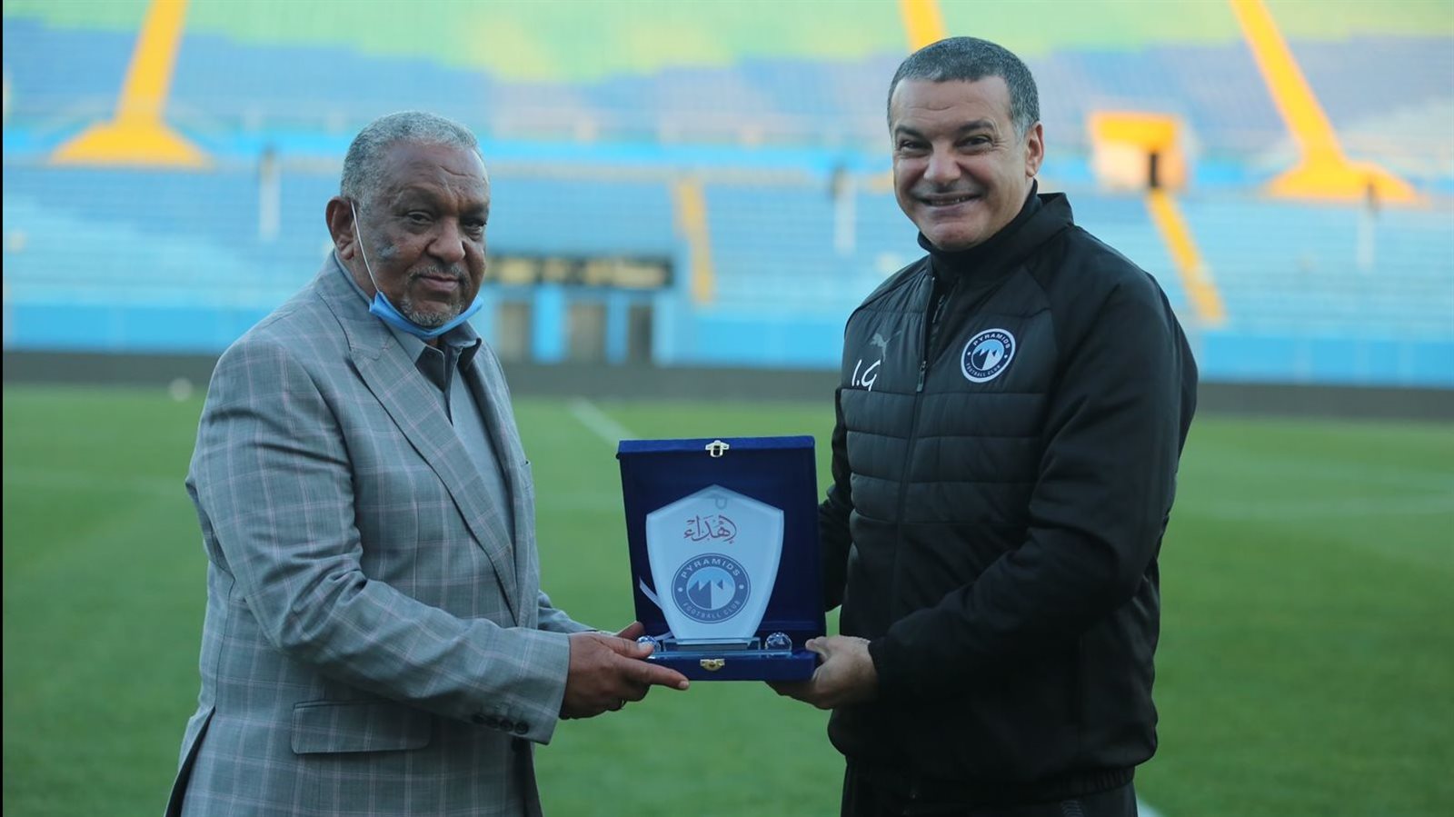وأهدى المدير الفني درع نادي بيراميدز لـ عادل أبو جريشة نائب رئيس نادي المريخ السوداني والوفد المرافق له مرحبا بوجودهم على أرض مصر وفي ضيافة نادي بيراميدز.