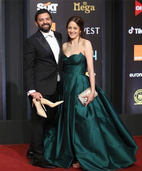 وأثارت ياسمين أبو النجا حالة من الجدل الواسع وقوفها على السجادة الحمراء حافية القدمين وزوجها يحمل حذائها.