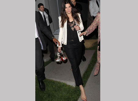 لم تتحمل النجمة الأمريكية ساندرا بولوك ألم قدميها، بعد حضور حفل توزيع الأوسكار عام 2012، وسارت حافية القدمين بعد الحفل.