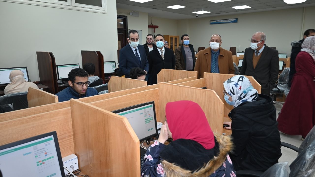 وفي أثناء الجولة، اطمأن رئيس الجامعةعلى اتخاذ كافة الإجراءات الاحترازية، وتوفر الكادر الطبي من أطباء وتمريض، وعلى تجهيزات العيادات الطبية بكافة اللجان، وعلى تلقي كافة الطلاب الممتحنين لتطعيمات فيروس كورونا، وارتداء كافة أعضاء هيئة التدريس والمراقبين والطلاب للكمامات الطبية.