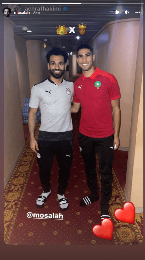 نشر محمد صلاح ، نجم منتخب مصر وليفربول الإنجليزي ، صورة له مع أشرف حكيمي، لاعب باريس سان جيرمان الفرنسي، ومنتخب المغرب ، ذلك عبر موقع انستجرام .