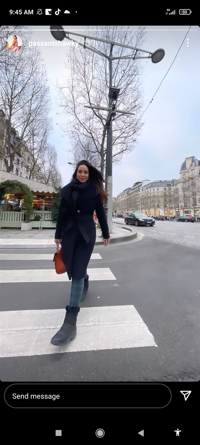 وظهرت بسنت شوقي في الصورة مرتدية بالطو طويل باللون الاسود، مما نال إعجاب متابعيها.
