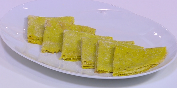 * تفرد بالنشابة مع النشا وتفرد مرة أخرى بماكينة فرد العجينة ثم تدهن بالسمنة و تخلط اللحمة المعصجة والبيضة والبقدونس وتحشى بها العجينة.