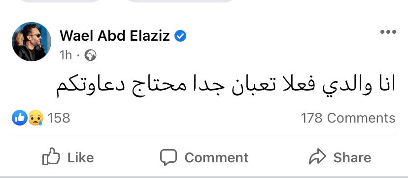 طلب شقيق الفنانة ياسمين عبد العزيز الدعاء لوالده عبر حسابه بموقع التواصل الاجماعى “فيسبوك”.