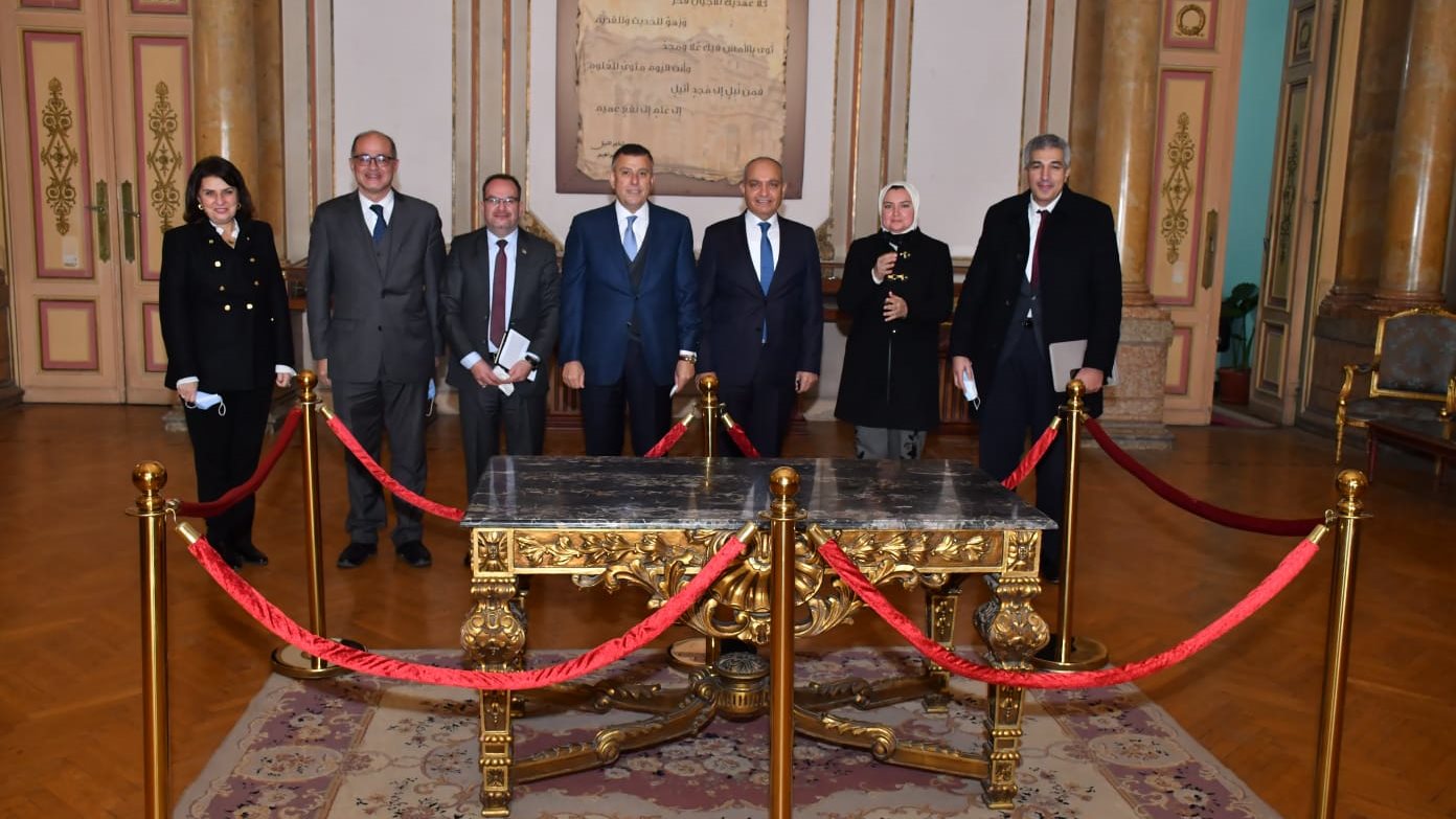 وفي نهايه اللقاء قام الاستاذ الدكتور محمود المتيني رئيس جامعه عين شمس بتقديم كتاب قصر الزعفران لمعالي سفير دوله الاردن بمصر ، ثم قاما بتبادل الهدايا التذكاريه.