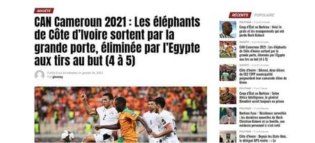 وأبدت وسائل الإعلام والصحف الإيفوارية حسرتها على الهزيمة أمام منتخب مصر والخروج من كأس أمم إفريقيا في الكاميرون.