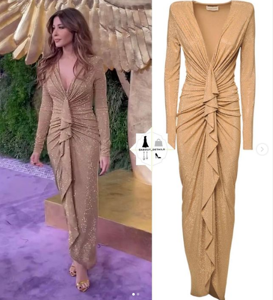 وانتعلت نانسي عجرم حذاء صيفي أنيق ذا كعب عالي باللون الذهبي، ولم تتكلف في ارتداء الإكسسوارات والمجوهرات مما زاد من جاذبيتها.