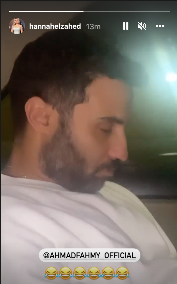 ونشرت هنا الزاهد فيديو مضحكا لزوجها احمد فهمي وهو نائما من السيارة .