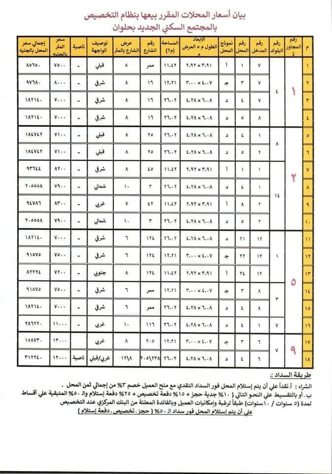 كما اشترطت أن يتم سداد 25% من القيمة الإجمالية للمحل دفعة استلام تسدد خلال شهرين، وأن يكون المبلغ المتبقي الـ50 % يمكن تقسيطها على أقساط شهرية لمدة 5 أو 10سنوات، وفقا لرغبة العميل وإمكانياته المالية، مع إمكانية خصم 3% من قيمة المحل في حالة السداد الفوري.