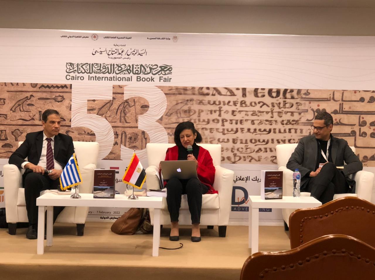 اقيمت مساء اليوم الثلاثاء، ندوة تحت عنوان "شعراء وكتاب يونانيون كلاسيكيون ومعاصرون"، داخل معرض الكتاب بأرض المعارض، للتحدث عن أهمية الترجمة داخل القسم اليوناني.