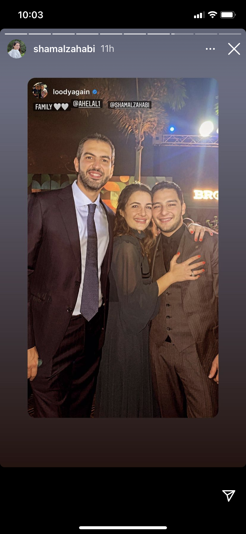 وظهرت شام الذهبي ، في الصورة بصحبه شقيقها وخطيبها مما أثار إعجاب متابعيها.