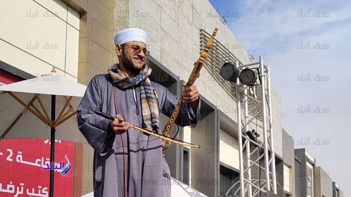 شاهد المواطنون أحد رجال الصعيد العازف على الربابة كأحد الأنشطة التي يقدمها معرض القاهرة الدولي للكتاب علي الأغاني المختلفة وتفاعل المواطنون معه بالرقص والتصفيق.