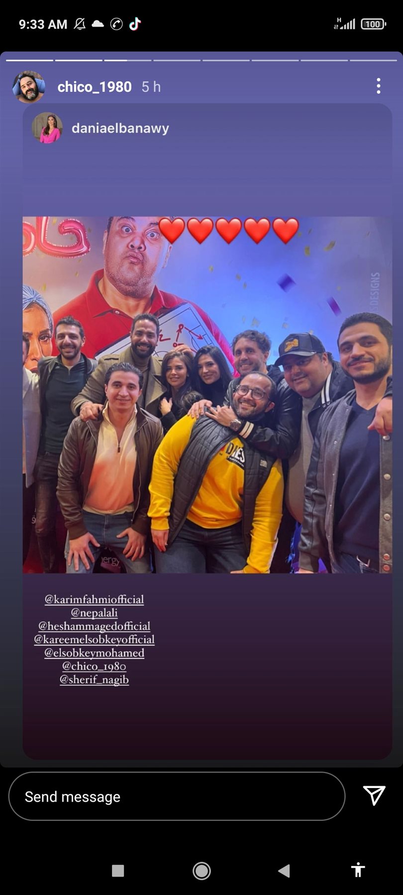 وظهر شيكو في الصور من العرض الخاص لفيلم حامل اللقب، برفقة أبطال العمل أبرزهم هشام ماجد.