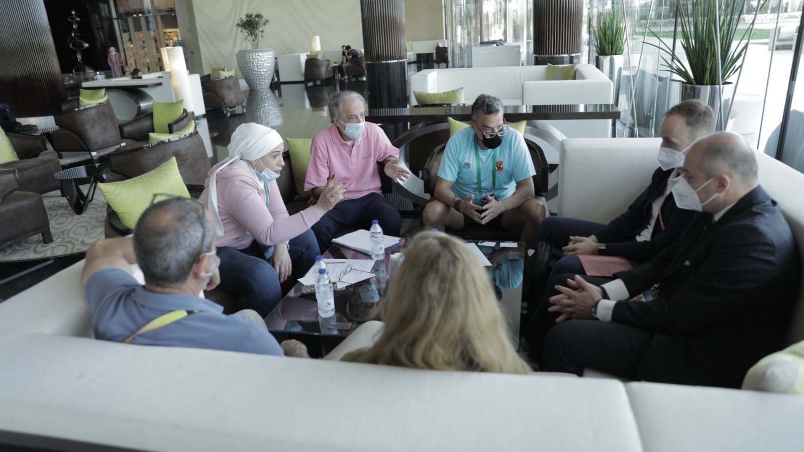 استقبل المهندس خالد مرتجي، أمين صندوق النادي الأهلي ورئيس بعثة الفريق الأول لكرة القدم في الإمارات اليوم وفدًا من الاتحاد الدولي لكرة القدم «فيفا» واللجنة المنظمة لبطولة كأس العالم للأندية في مقر إقامة البعثة بأبو ظبي وفي حضور سمير عدلي، المدير الإداري، وحنان الزيني، مدير اللوائح.