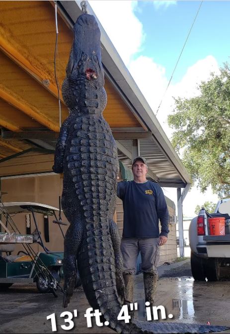 استطاع صياد من ولاية ميسيسيبي، إمساك تمساح يبلغ من العمر 80 عامًا ووزنه 410 كجم بينما يبلغ طوله 13 قدمًا و4 بوصات، وذلك في بحيرة في جنوب فلوريدا.