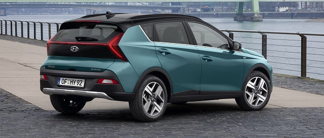 دعمت السيارة هيونداي بايون موديل 2022 بجنوط رياضية المظهر يتراوح قياسها بين 15 و 17 بوصة، مع نسبة طول كلي بلغت 4180 مم، وبعرض يبلغ 1551 مم، و 1500 مم للارتفاع، بينما ضم مساحة تخزين خلفية سعتها 411 لتر.