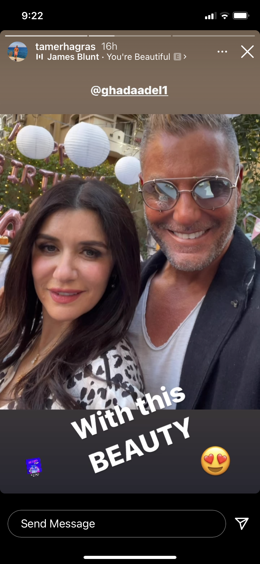 وظهر تامر هجرس، في الصورة بصحبة الفنانة غادة عادل مما حازت على إعجاب متابعيه وعلق قائلا:" مع الجميلة".
