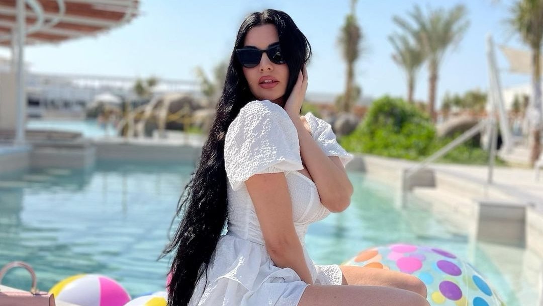 وظهرت "لاميتا" عبر حسابها الشخصي بموقع "انستجرام" فى الصور بإطلالة مثيرة وهى ترتدى فستان ابيض قصير ونظارة شمس، ورفعت شعرها الأسود للخلف بطريقة جذابة ومتناسقة مع إطلالتها، الذى كشفت عن أنوثتها وجذبت أنظار متابعيها .