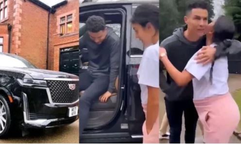 ظهر مؤخراالنجم العالمي كريستيانو رونالدو مهاجم مانشستر يونايتد الإنجليزي ، بسيارة فارهة من نوع "كادليك إسكاليد"، برفقة عائلته داخل السيارة .
