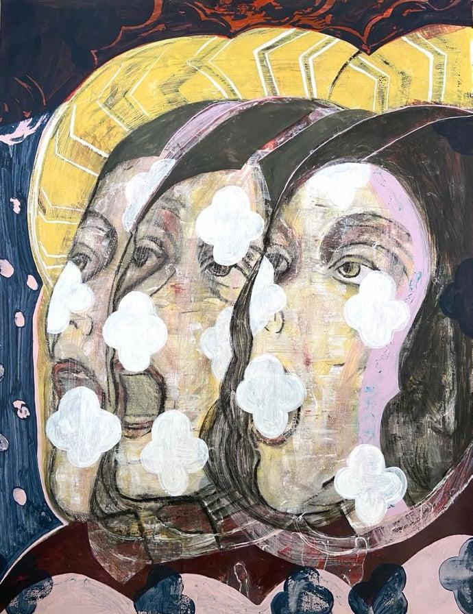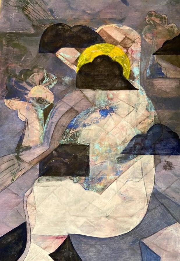 وأضاف طلعت: "يُمسك عصام معروف بتلابيب هذا الحس الروحي لتلك المسافة الفاصلة بين ما هو مرئي وما يحمله بذهنه من اللامرئي ليتخذ وجوها وأجسادا وهيئاتٍ ذات تخطيطات متحركة، معتمدة على الحس الموسيقي، بحيث تكون في وجودها البنيوي على السطح أكثر فاعلية في استنباط بنية جديدة، عبر كسر الأنماط، أو لنقل إنه مع كل عمل وكأنه بإزاء خلق عالم جديد يعبر بجدارة عن المعاني في الوجود، وفلسفياً يتخذ الفنان موقفاً جمالياً خاصة التعامل مع الجسد، ينحو به لونياً بمنطق الرؤى الصوفية فتندمج حافات الشكل مع حافات الخط بشفافية لا تُلغي وجود كل منهما، بل إن ما يراه المرء عبارة عن طبقات تتواءم مع بعضها كشفافية الحلم".