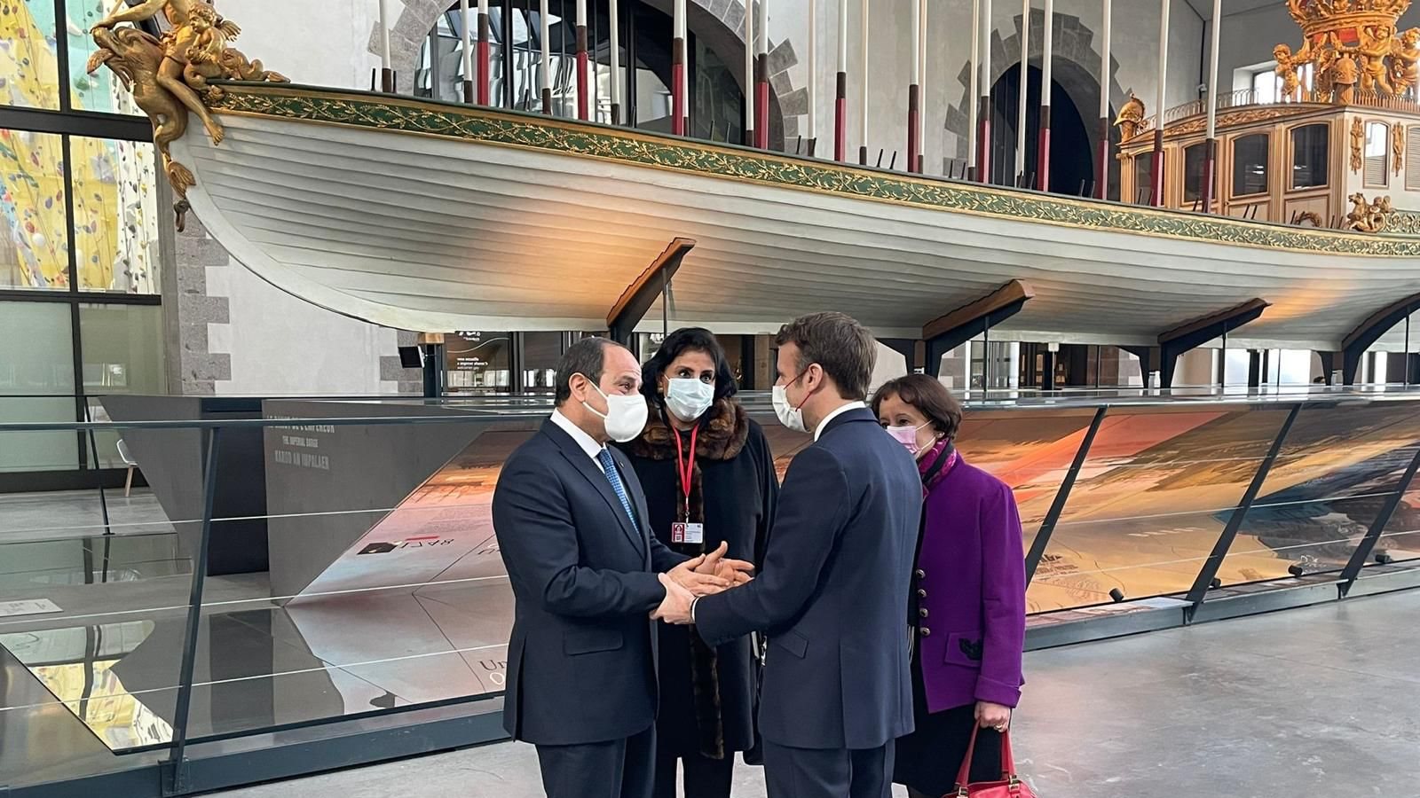 وأعرب الرئيس من جانبه عن التقدير لحفاوة الاستقبال، والتي تعكس الطابع الاستراتيجي للعلاقات الثنائية المتميزة بين البلدين، مؤكداً ما توليه مصر من أهمية خاصة لتعزيز التعاون مع فرنسا في مختلف المجالات، لاسيما ما يتعلق بنقل الخبرات والتكنولوجيا الفرنسية العريقة في كافة المجالات التنموية إلى مصر، فضلاً عن تعظيم التنسيق والتشاور مع الجانب الفرنسي خلال الفترة المقبلة بشأن مختلف الملفات السياسية والأمنية والعسكرية والاقتصادية ذات الاهتمام المشترك، بما يساعد على صون الأمن والاستقرار بمنطقة الشرق الأوسط وحوض البحر المتوسط والقارة الأفريقية، خاصةً في ظل الرئاسة الفرنسية الحالية للاتحاد الأوروبي.