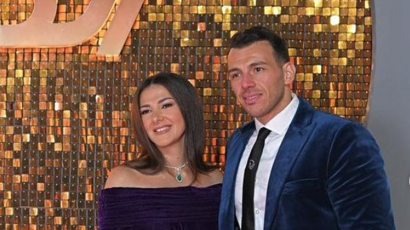 وظهرت دنيا سمير غانم بإطلالة جذابة برفقة زوجها رامي رضوان مرتدية فستانا طويل باللون الأسود ، مما حازت على إعجاب متابعيها.