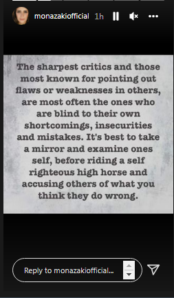 نشرت منى زكي تعليقا جديدا عبر حسابها على موقع التواصل الاجتماعى إنستجرام توجه فيه رسالة قوية الى النقاد الذين هاجموها.