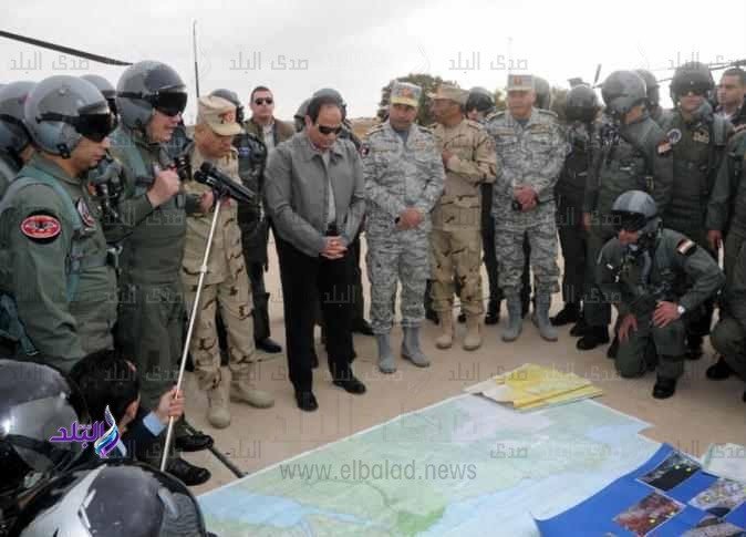 وبعد اجتماع مجلس الدفاع الوطني، صدرت الأوامر بتوجيه ضربة جوية مركزة ضد البؤر الإرهابية فى ليبيا بمواقع مختلفة على البحر المتوسط منها مدن درنة وسرت.