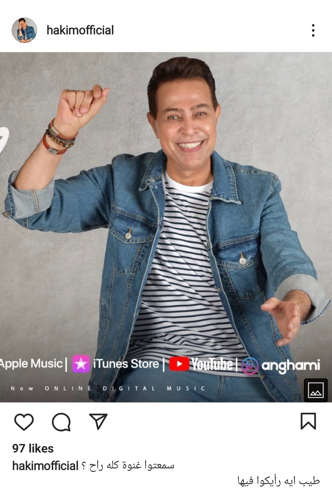 نشر الفنان حكيم صورة له عبر صفحته الرسمية على موقع التواصل الاجتماعي للصور والفيديوهات إنستجرام.