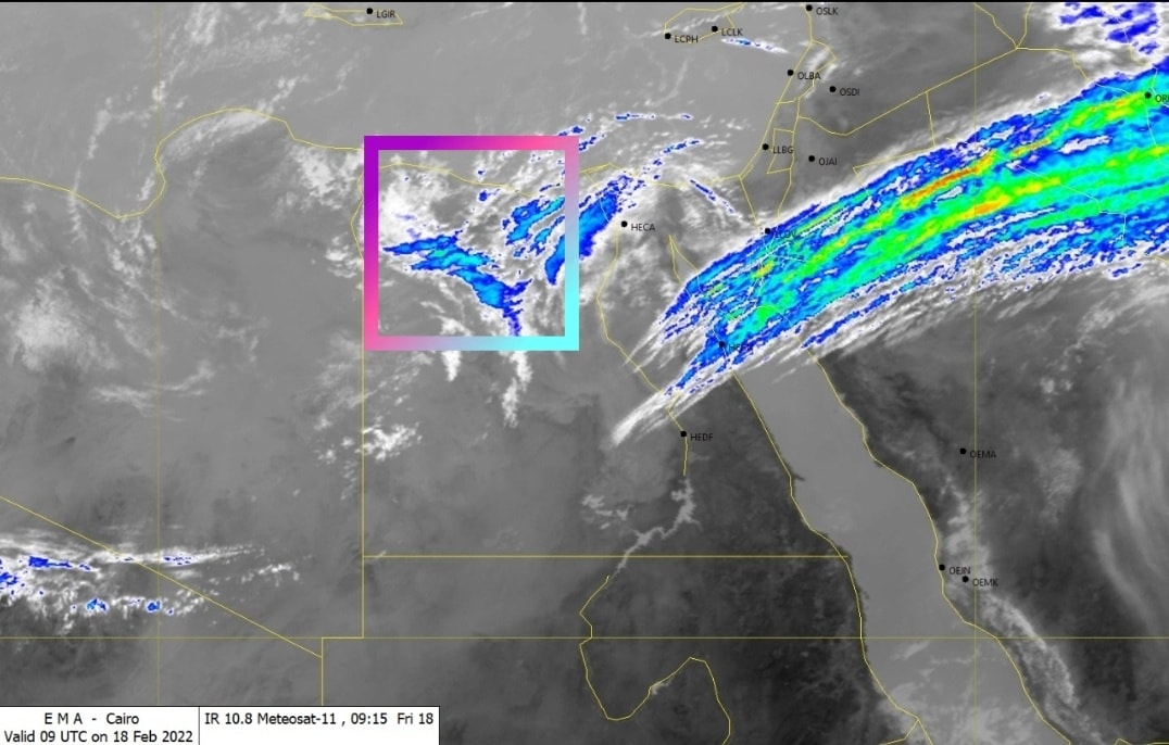 وبحسب صور الأقمار الصناعية، التي نشرتها هيئة الأرصاد الجوية، حول حالة الطقس، فإنه من المتوقع أن تسود أجواء شديدة البرودة ليلا وسقوط للأمطار على مصر الوسطي تمتد إلى القاهرة والدلتا تكون متفاوتة الشدة، كما تنشط الرياح تكون مثيرة للرمال والاتربة علي شمال وجنوب الصعيد.