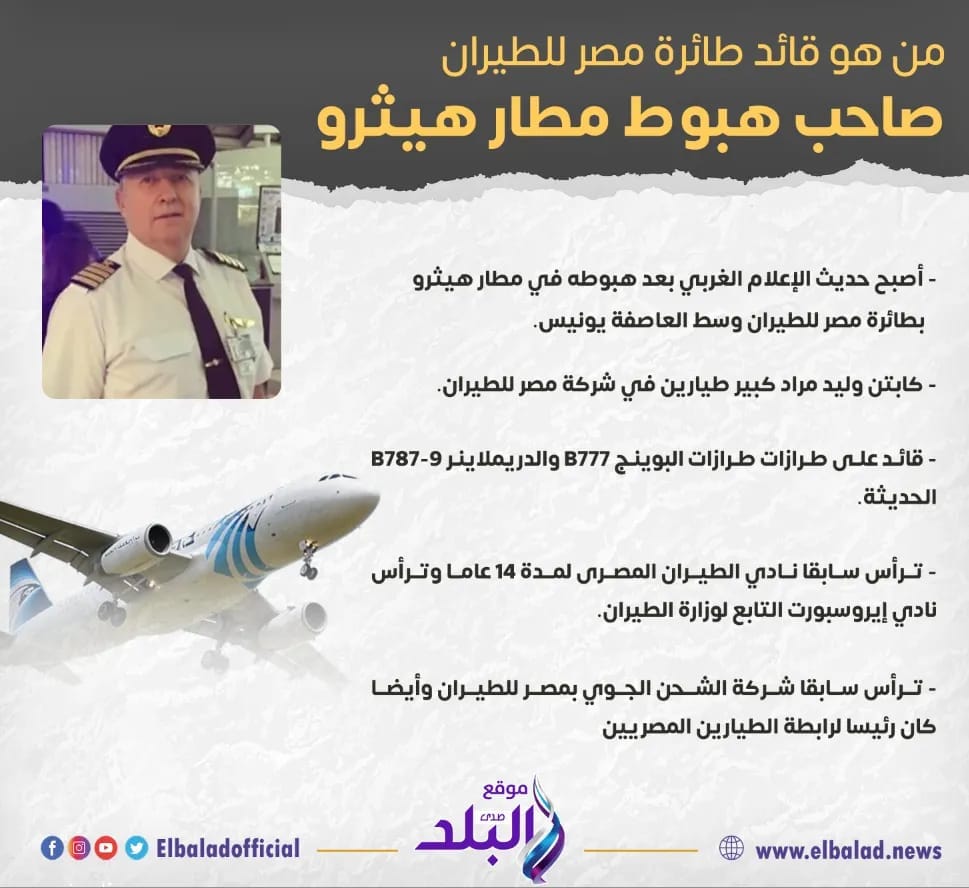 أشاد الطيار عمرو أبوالعينين رئيس مجلس إدارة الشركة القابضة لـ مصرللطيران بأداء الطيار وليد مراد قائد رحلة مصر للطيران رقم MS777 من طراز البوينج B787-9Dreamliner المتجهة الي مطار هيثرو بلندن أمس وطاقم الرحلة المعاون له لتعاملهم بحرفية ومهارة عالية أثناء هبوط الطائرة بمطار هيثرو وسط ظاهرة جوية غير مسبوقة شهدتها بريطانيا خلال الساعات الماضية بسبب تعرضها للعاصفة "يونيس" مما أدي الي عدم تمكن كثير من الرحلات الجوية من الهبوط وتحويل مسار الكثير من الرحلات من مطار هيثرو الي مطارات أخري.