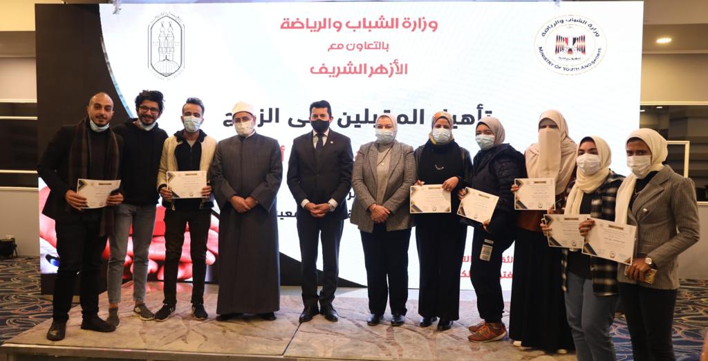 كما حرص كلٌ من معالي وزير الشباب والرياضة وفضيلة رئيس قطاع المعاهد الأزهرية على تكريم الشباب المشاركين في الدورة الرابعة من برنامج "تأهيل المقبلين على الزواج".